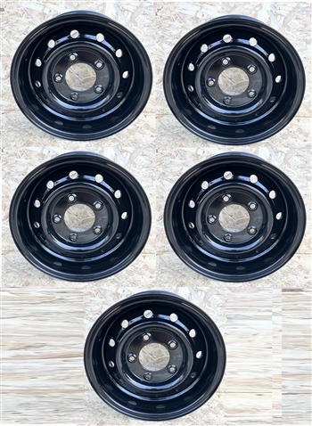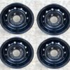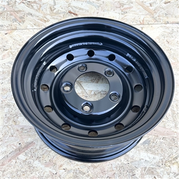 | 5x High Quality Gloss Black Steel Wolf Rims to suit Tubeless tyres. These are 16″ Diamater by 6.5″ width with ET0 offset and load rating of 1100kg per wheel. Being ET0 offset, these sit flush with the standard arches of a Defender meaning you get the more filled out arch look without needing wheel spacers This is the same offset and and spec as factory fitted Wolf Rims. These are made from much thicker steel than the original steel rims fitted to Defender models, so make for a great heavy duty upgrade. They also look good on any retro build Defender, especially if colour coded to the body. However they can off course be left in the colour they are supplied in. These fit: If you want new wheel nuts at the same time, You can fit longer wheel studs (FRC7577) if you wish, however even the factory ones built for the army didn’t use longer studs. Land Rover just recommends when fitting them using the standard studs & torque them higher to 170NM Over the last 20 years or so of fitting wolf wheels to various builds, we have never changed the studs and just done it the same as the MOD ones and just torqued them higher |