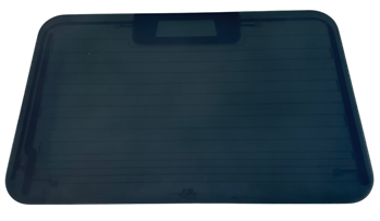 Heated glass to fit the one piece doors on Defender after 2002. This is the type held in with a rubber seal rather than the earlier type held in with metal strips on the inside.