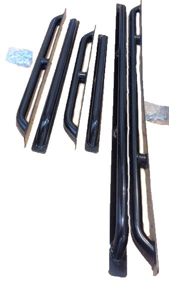 These are steel side protection bars which bolt to each of the 4 doors and also the side of the body tub to give full side protection when offroading.