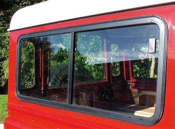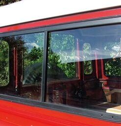 Pair of Clear Sliding Glass Window Kit This is the deluxe kit for replacing or fitting new sliding windows to your 90 or 110 hard top. Unlike others on the market this is designed to be a direct replacement for the factory fitted units on station wagon models and fits the exact same size hole as original and if you are replacing old units, there is no need for any extra cutting or trimming. This means it looks correct when fitted and will work with any existing interior window trim panels too. Please note a genuine roof panel hole is 105.7cm Width x 42.7cm Height. So if you have a van type roof panel & want to retro fit & cut your own hole this is the size hole you will need to cut. These are a very high quality window manufactured in the UK, excellently put together with none of the rattling that you can get on your standard windows. This kit is made from clear glass. Kit included rivets required to fit panels to your roof sides & the rubber strip to cover the rivets once fitted. Glass is toughened to E11 CE R – 43 This is not a genuine part. |