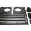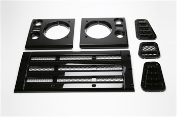 Gloss Black front grill, lights surrounds, wing tops vents and RH side Vent to fit Defender models 1994-2016. So fits 300tdi, Td5 and Puma Models. Or any Defender with the air intake hole on the RH wing. The front grillset and wing ops will fit all Defender models 1983-2016, it is just the RH wing vent that will only fit 1994-2016 models.