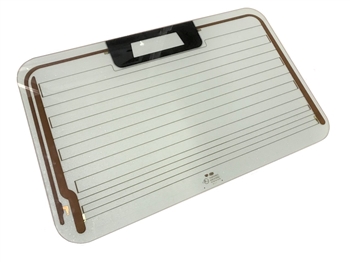 Heated glass to fit the one piece doors on Defender after 2002. This is the type held in with a rubber seal rather than the earlier type held in with metal strips on the inside.