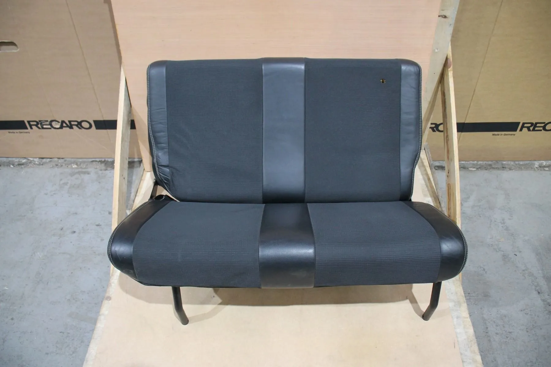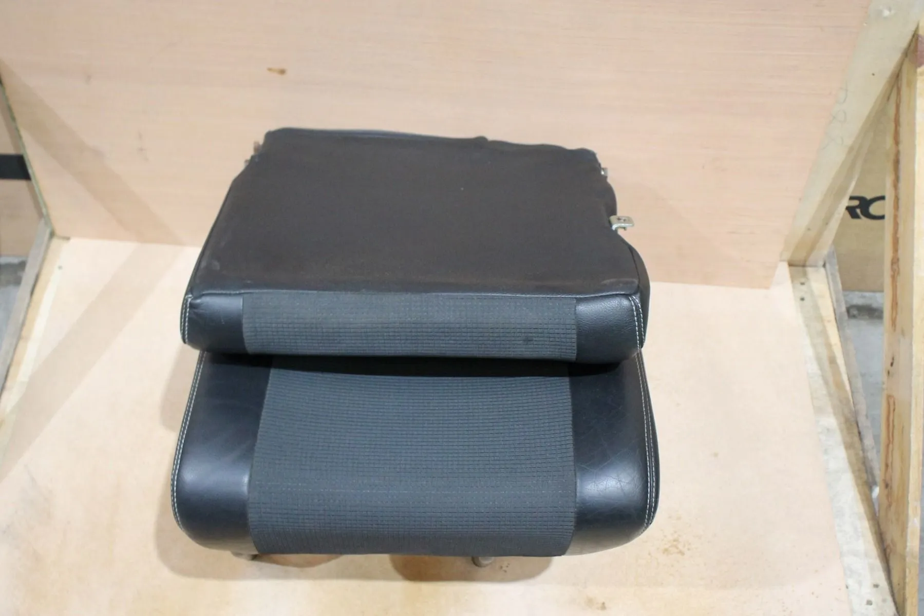 Part leather with black cloth centres and white stitching