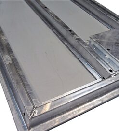 This has a hot dipped galvanised frame with a galvanised steel skin, The zinc on the skin is electroplated so is perfectly smooth and ideal for painting