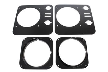 This kit is ideal to give the retro look to your Defender. The flat backing plates cover any surplus holes that show when you rmeove the original plastic light surrouinds
