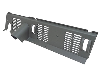 This is the grey plastic vent panel that sits horizontally in the back of the classic Defender dashboard. Over the years this fragile panel traditionally gets a million things screwed into it so is always high on the shopping list for any restoration project.